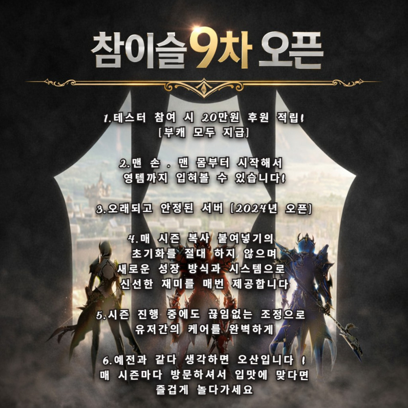⭐안녕하세요 2026/4/18 새롭게 참이슬서버 9차 오픈하였습니다