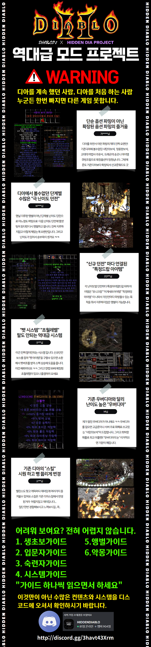 역대급 신규모드 프로젝트 디아블로 (히든디아) 오픈 1 코소리 신버전 0 174 2021.01.27 06:00 http://discord.gg/3havt43Xrm 글쓴이 0 0 Lv.1 1 코소리 실버 750 (75%) 등록된 서명이 없습니다.