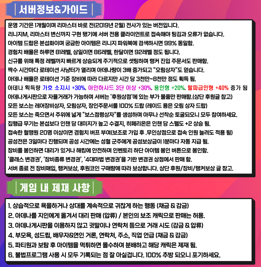 ✅✅✅ 진퉁 해골서버 ✅✅✅ 1개월 무한전투 ✅✅ 아덴완판 린M변신 ✅