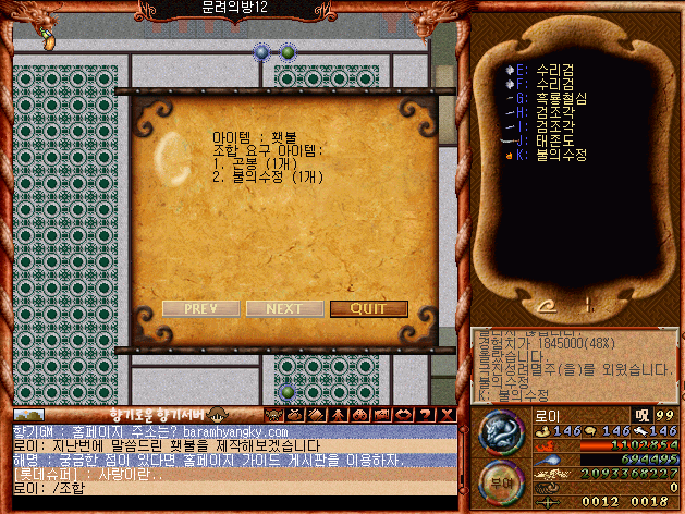 바람의나라 프리서버, 향기서버를 즐기고 있는 현자 여가 입니다.