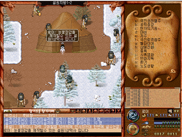 한번 구버전 바람의나라 클래식의 4차토벌지역 설원에 대해 알아보도록 하겠습니다