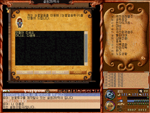 [바람의나라 클래식 구버전] 눈꽃방어구 제작후기 2편