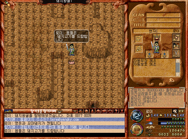 돼지왕은 100%확률로 리괘를 드랍하였습니다.