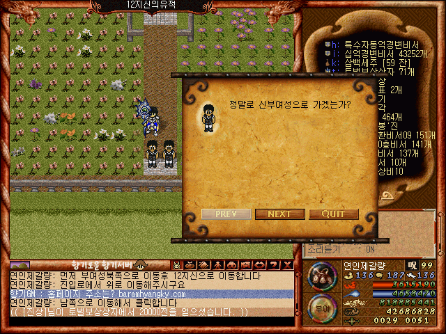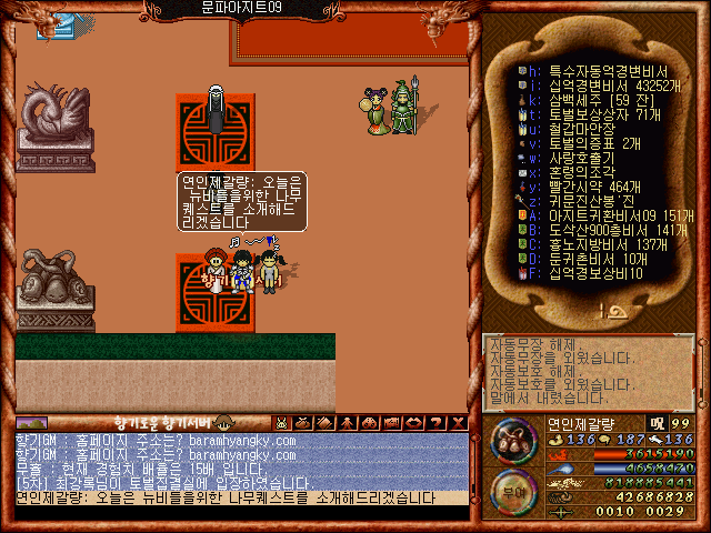 구버전 바람의나라 클래식 향기서버의 연인제갈량입니다.