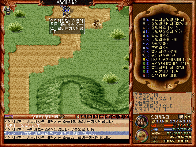 [바람의나라 클래식 구버전] 제갈량의 뉴비추천사냥터2탄 북방대초원 나무퀘스트 제1부 사천족움막이동