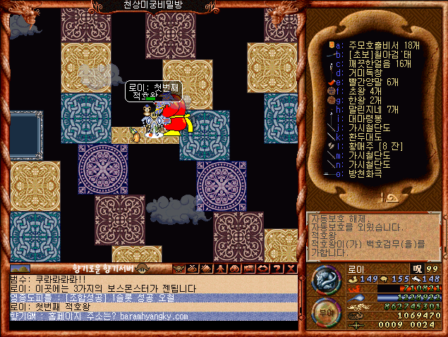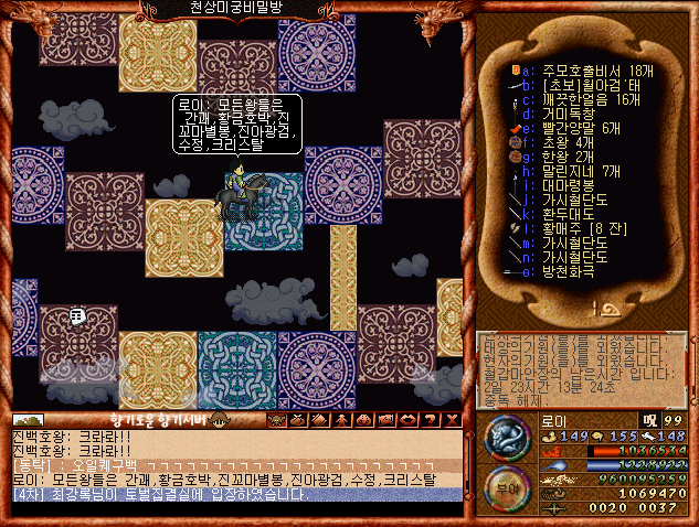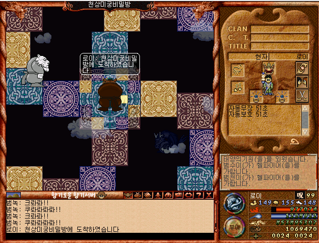 천상미궁의 최상층인 천상미궁비밀방에 도착하였습니다.