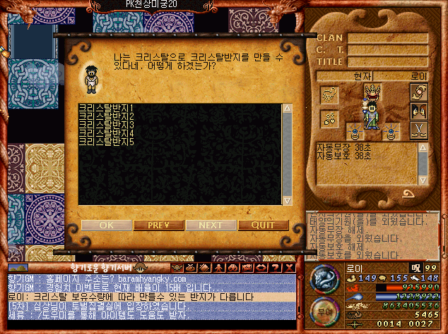 PK천상미궁20층엔 크리스탈노인NPC가 있습니다.