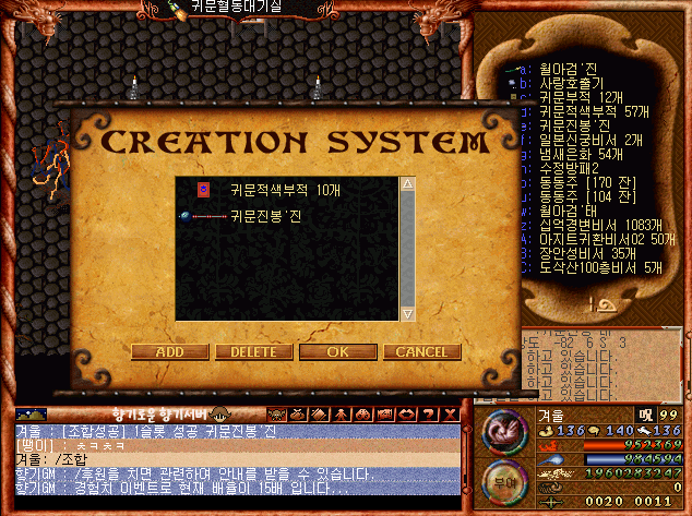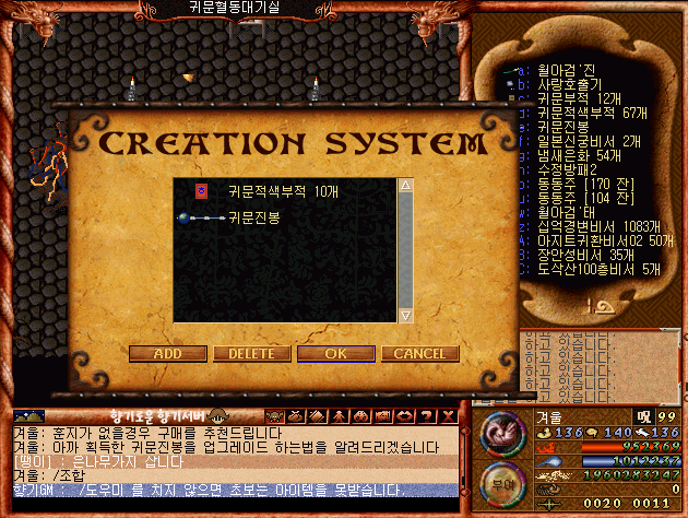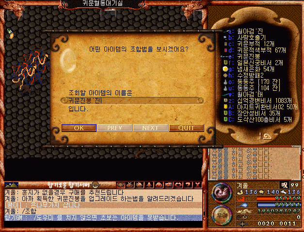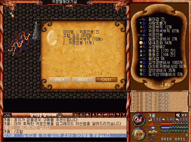 조합 요구 아이템으론 귀문진봉 1개와