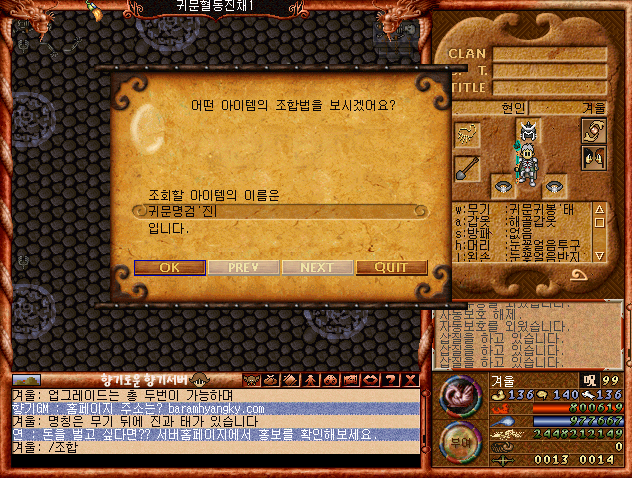 H인기글 구버전 클래식 바람의나라 - 진원관퀘스트 20   1 녹차1 03-04