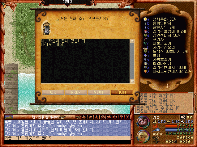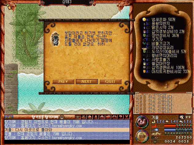 N새글H인기글 구버전 바람의나라- 4차 일일 퀘스트   1 오션 03-04