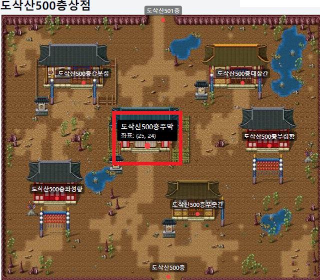 복건성 북쪽 월드맵 → 도삭산 → 도삭산500층상점 → 도삭산500층주막(25, 24)