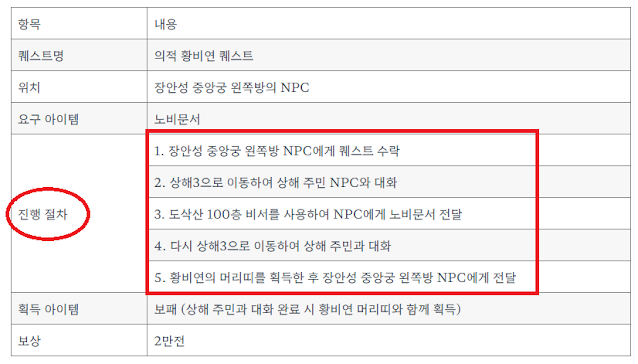 오늘깨야할 황비연퀘스트의 핵심내용들을