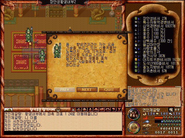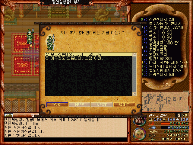 [바람의나라 클래식 구버전] 제갈량의 향기퀘스트4부 의적 황비연 퀘스트1편 (일명: 황비홍퀘)