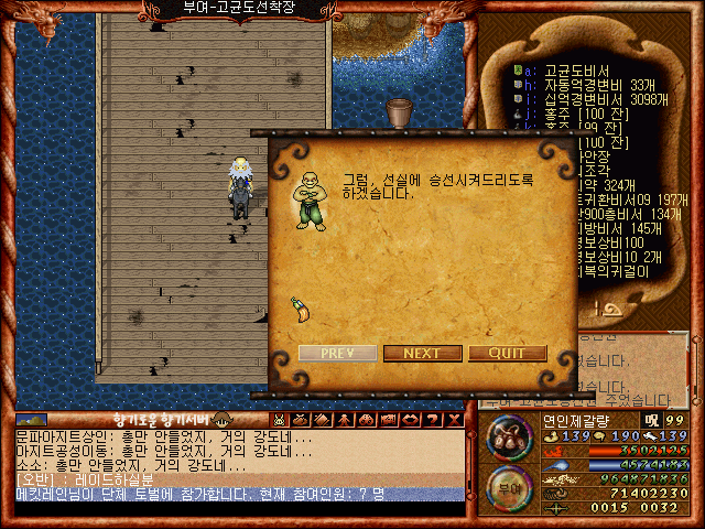 [바람의나라 클래식 구버전] 제갈량의 고균도 1차영웅의무기퀘스트 제2부 늑대의송곳니100개(고균도절벽)