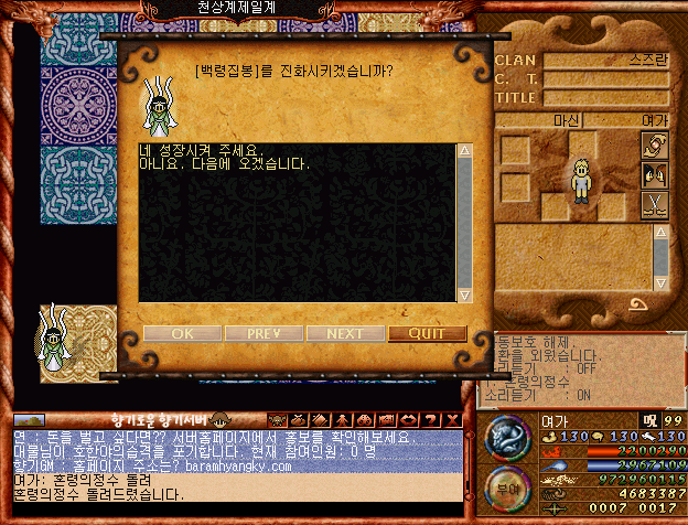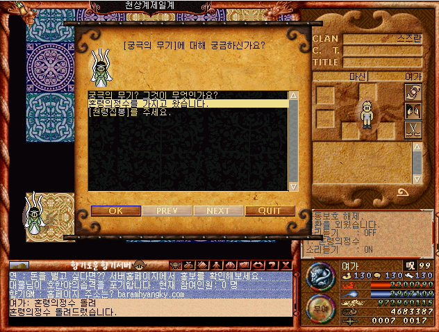 요즘 바람의나라는 너무 정신없어서 저는 구버전 클래식으로 하고 있는데요,