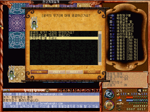 바람의나라 프리서버, 향기서버를 즐기고 있는 마신 여가 입니다.