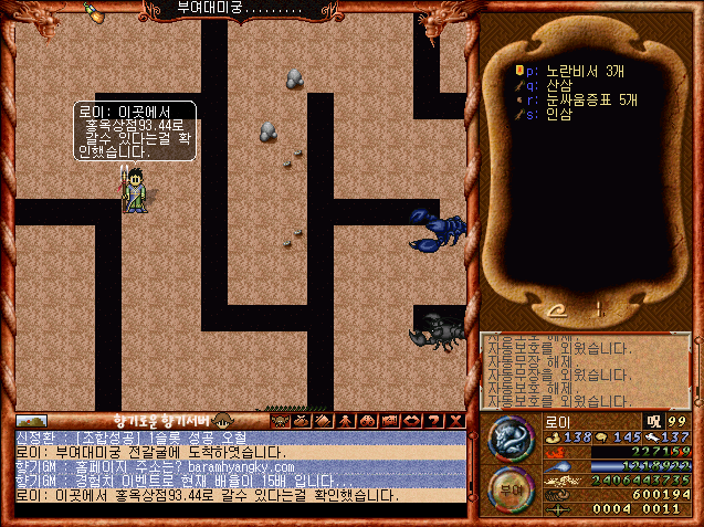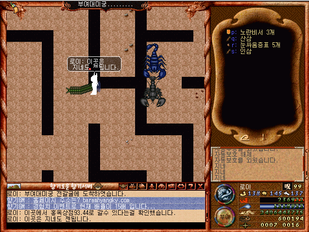 순조롭게 부여대미궁 전갈굴에 도착하였습니다.