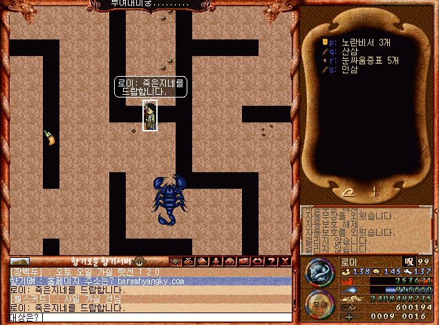 바람의나라 프리서버, 향기서버를 즐기고 있는 마신 여가 입니다.