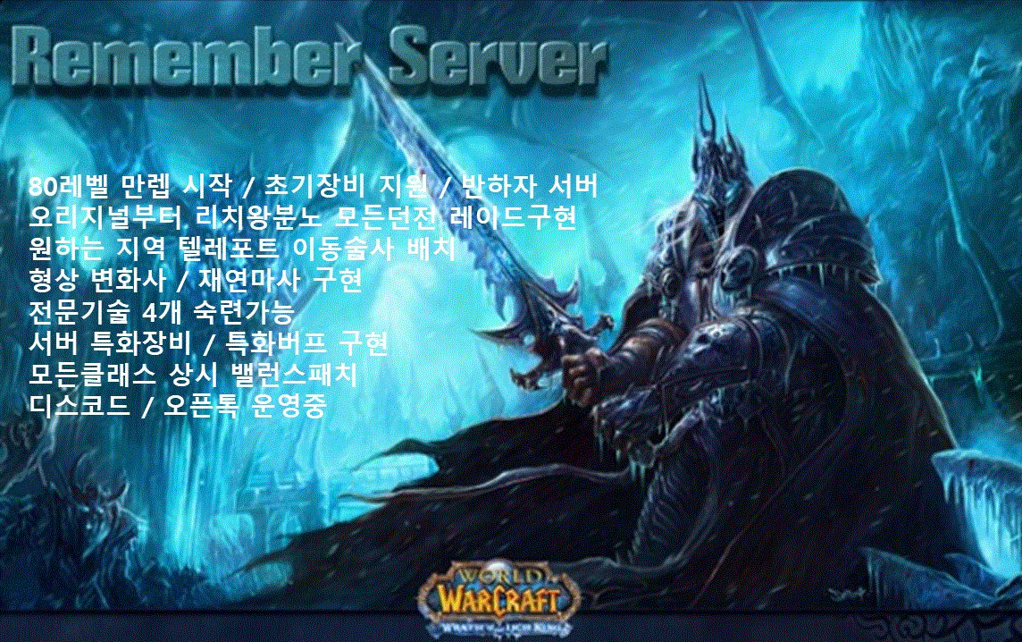 와우 프리서버 : 리치왕의 분노 3.3.5 '리멤버서버' 로 초대합니다. - 텃세x 신규유저 적응률 200%
