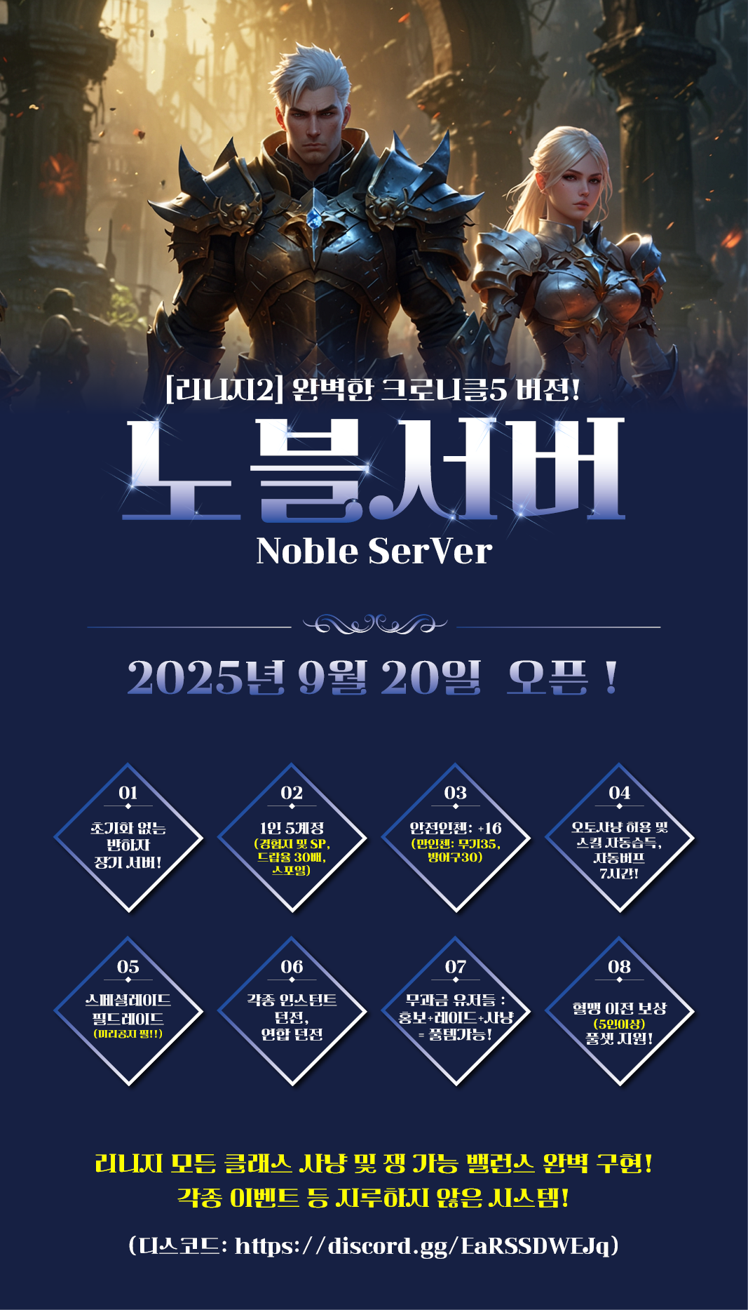 ❤️⭐❤️[리니지2] 하이파이브 노블서버 ▶️초기화NO◀️❤️⭐❤️
