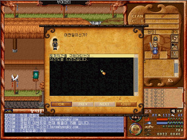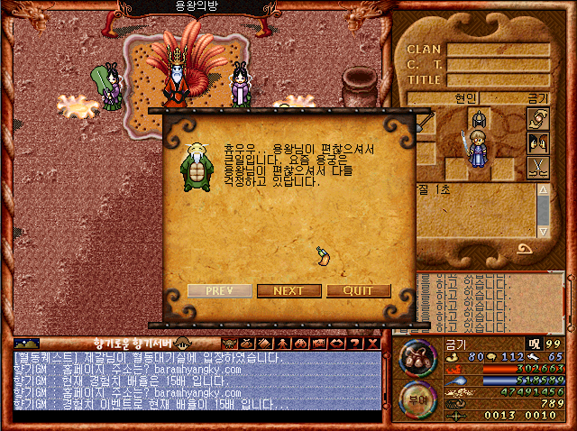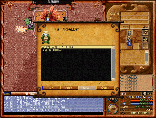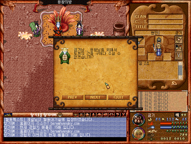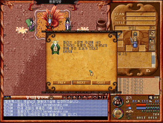 구버전 클래식 바람의나라 - 시작~4차승급 육성 가이드(9)(부제:별주부전 퀘스트-1편)