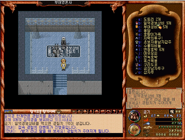 그리고 아이템창에 제가 가리키고 있는 일억경보상비란 무엇이냐!!