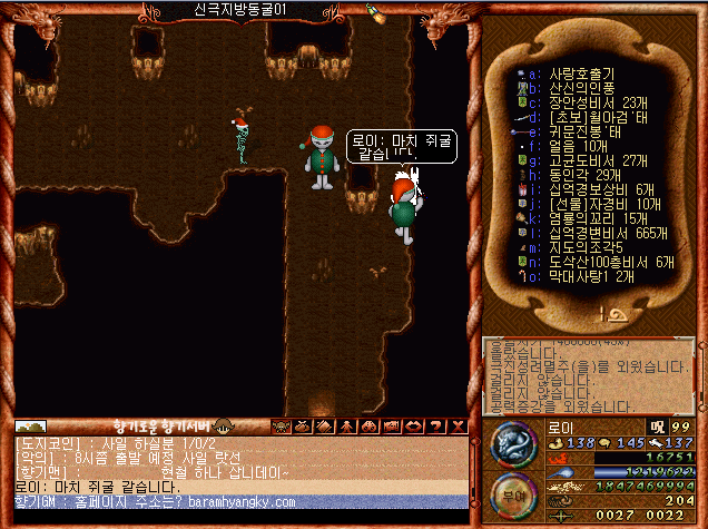 바람의나라 프리서버, 향기서버를 즐기고 있는 마신 여가 입니다.