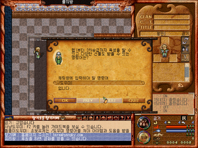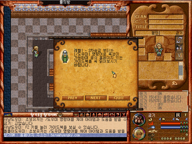 처음 바람의나라 아이디를 생성하고 들어오면 익숙했던 첫화면,말하기 도우미의 방이 생각 나시나요?2000년도에 처음 바람의나라를 접했던 그때가 생각나면서 추억에 잠기네요