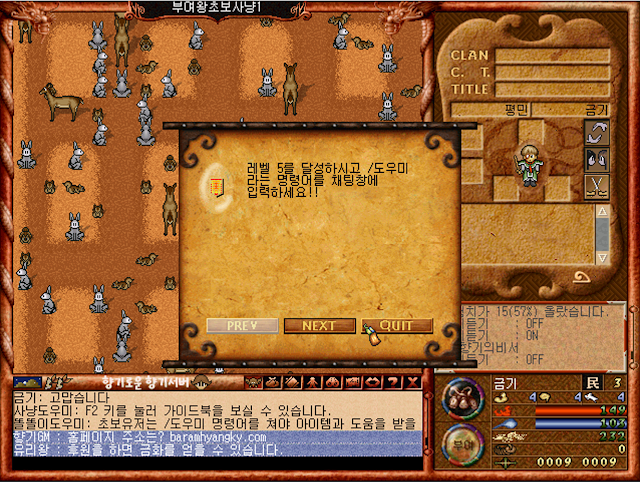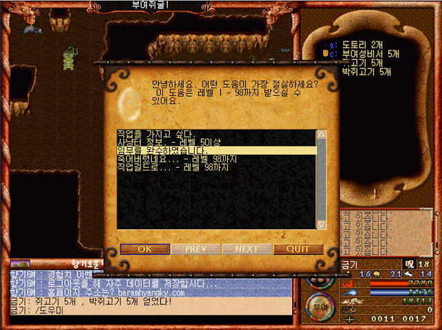 자 이제는 부여왕초보 사냥터에서 늘상 그랬듯 레벨5를 달성하시고 직업을 가져보도록 하겠습니다.