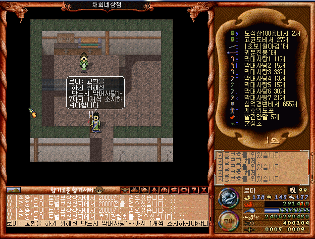 교환을 하기 위해선 반드시 막대사탕 1-7까지 소지하셔야 합니다.