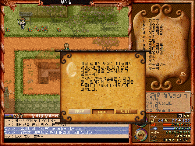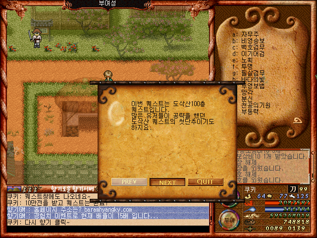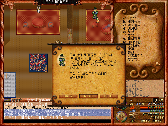 [바람의나라 클래식 구버전] 바람의나라 향기 퀘스트(도삭산100층 퀘스트)