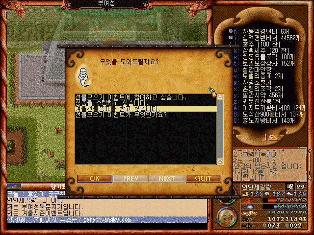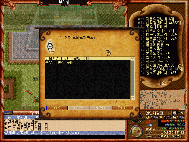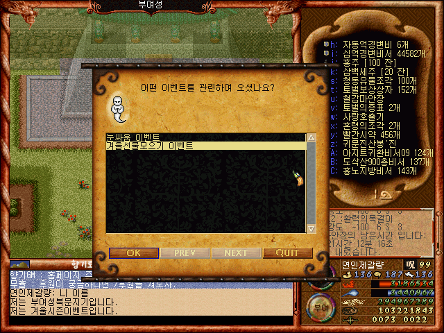 [바람의나라 클래식 구버전] 제갈량의 겨울시즌이벤트 제2탄 1부 겨울선물모우기이벤트