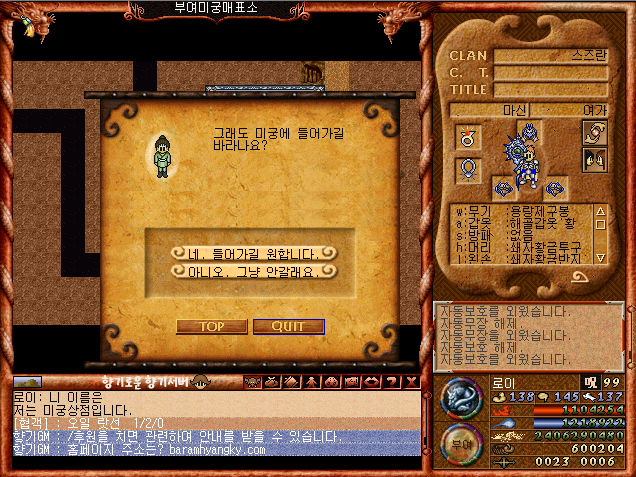 바람의나라 프리서버, 향기서버를 즐기고 있는 마신 여가 입니다.