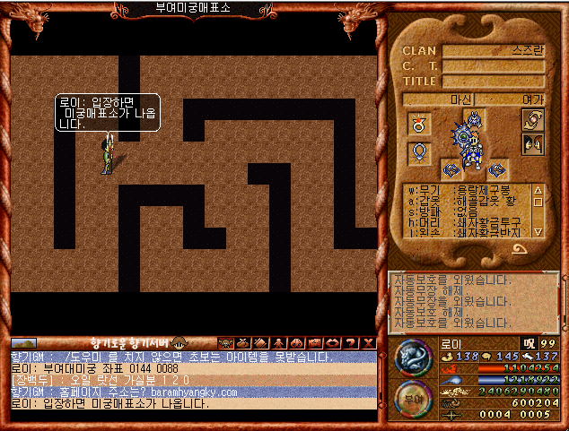 입장하면 미궁매표소란 맵이 나옵니다.