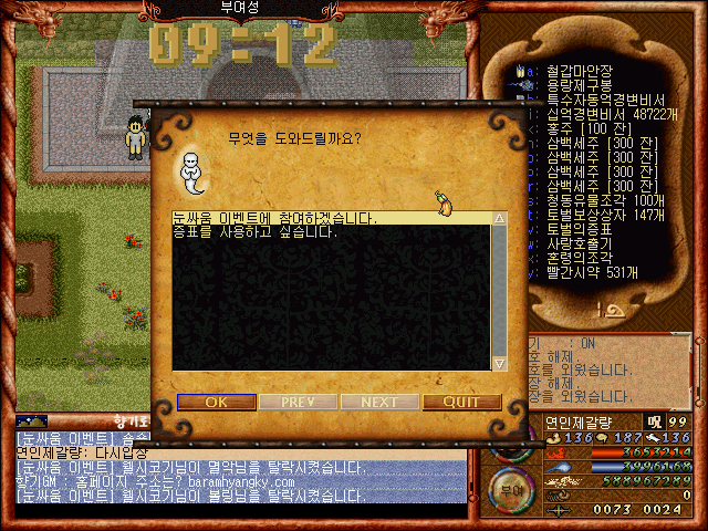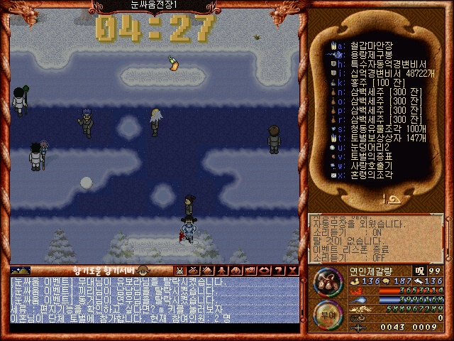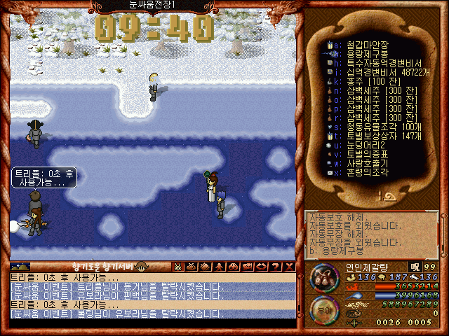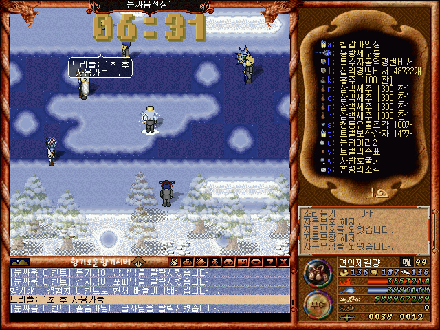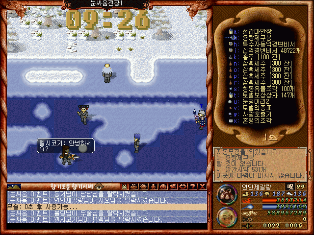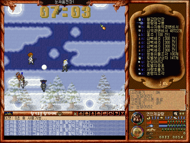 [바람의나라 클래식 구버전] 제갈량의 겨울이벤트소개 제1탄 2부 눈싸움과 보상