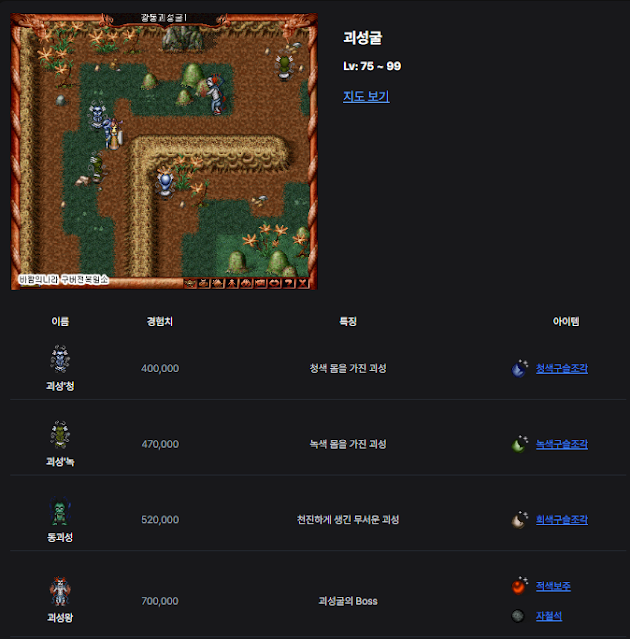 괴성굴은 구슬조각을 많이 획득 할수 있다는