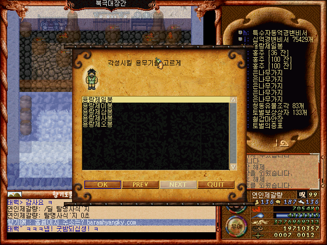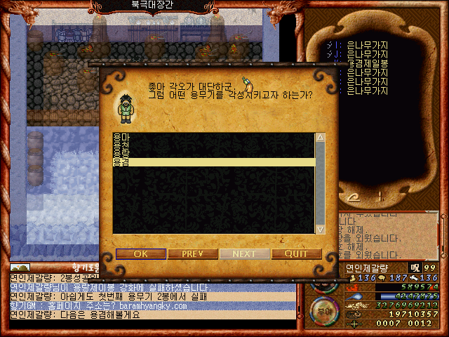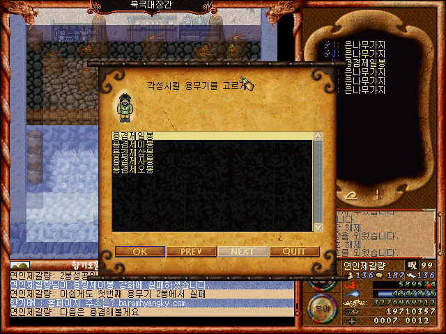 [바람의나라 클래식 구버전] 제갈량의 뉴비를 위한 노가다편 3탄4부 마지막편 용무기강화편(4봉작업)