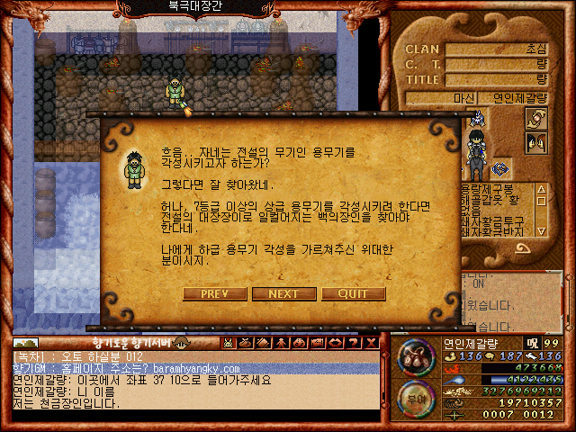 최초RPG 바람의나라 구버전 클래식입니다. 저도 학창시절