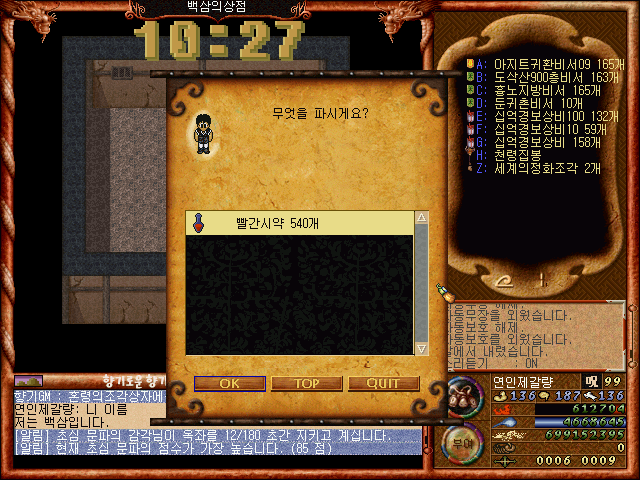 1만원에 거래됩니다. 빨간시약은 소모성아이템으로