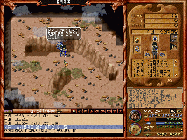 [바람의나라 클래식 구버전] 제갈량의 뉴비를 위한 노가다방법소개 3탄2부 용굴 어금니작업