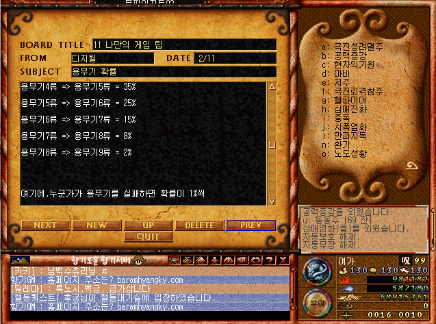 N새글H인기글 구버전 바람의나라- 4차 일일 퀘스트   1 오션 03-04