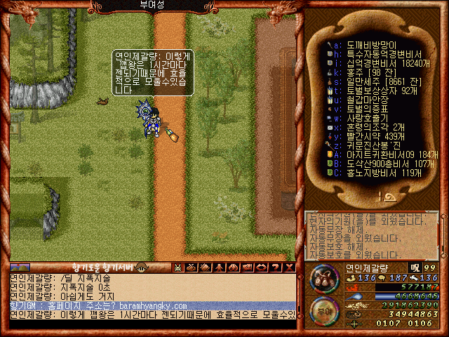 [바람의나라 클래식 구버전] 제갈량의 뉴비를 위한 노가다방법소개 1탄 깹굴 1부 부여성깹빵노가다