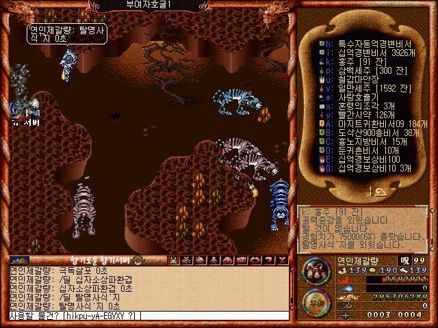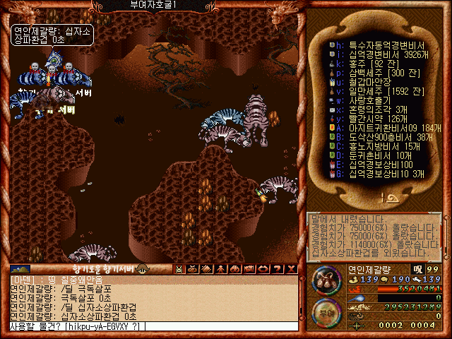 부여자호굴의 몬스터들을 효율적으로 잡기위해
