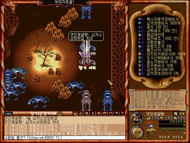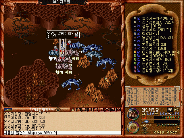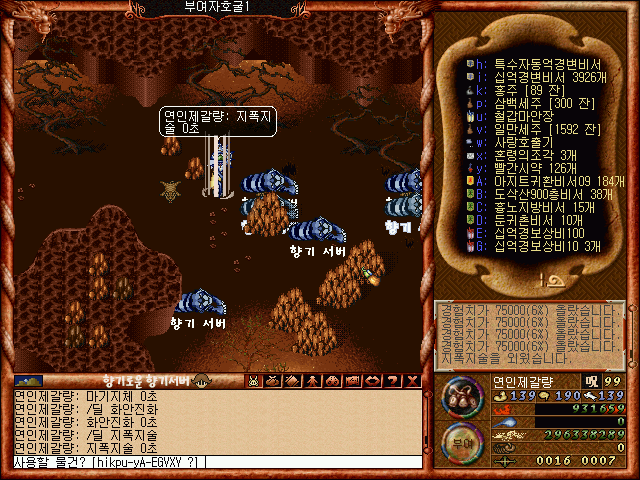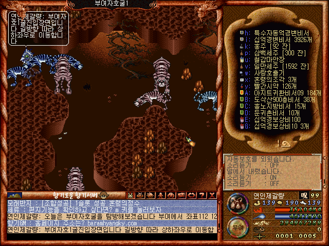 부여성 자호굴의 몬스터 들을 사냥하는모습