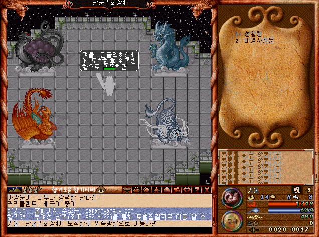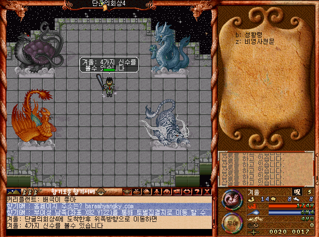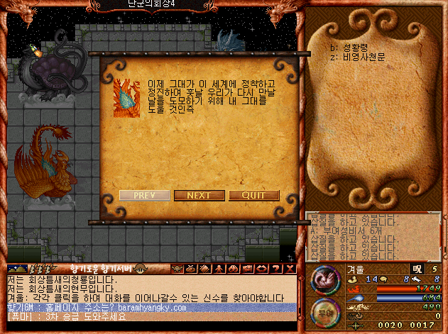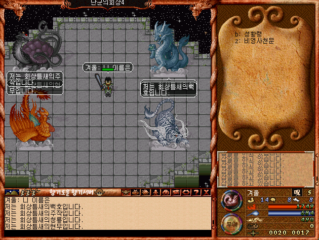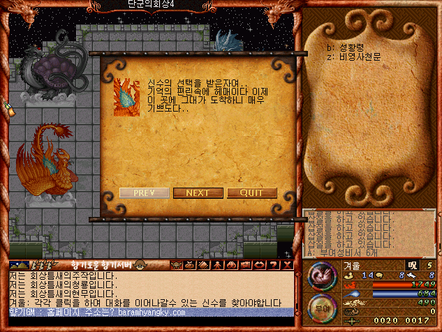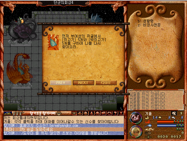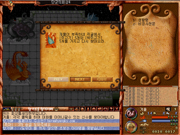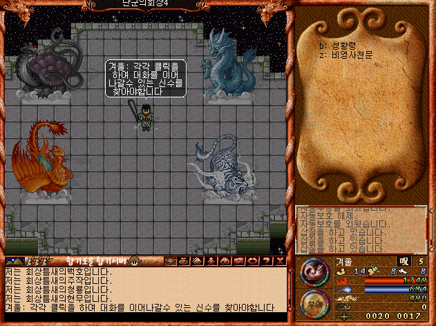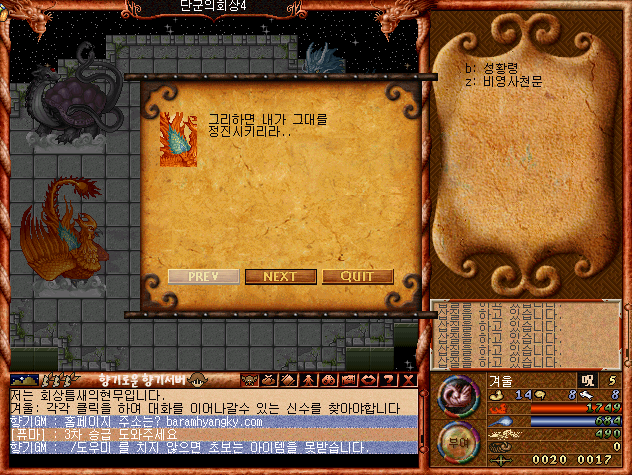 주작과의 대화를 통해 여러가지 퀘스트를 받을수 있으며