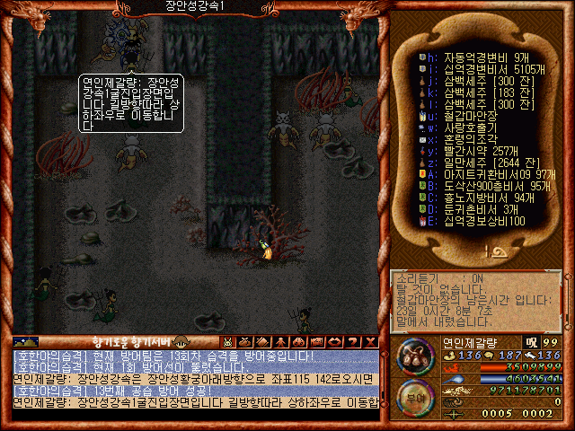 [바람의나라 클래식 구버전] 제갈량의 장안성강속탐방 (청옥의공주퀘스트)