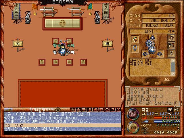 바람의나라 클래식 구버전 향기서버를 즐기고 있는 마신 적중입니다.