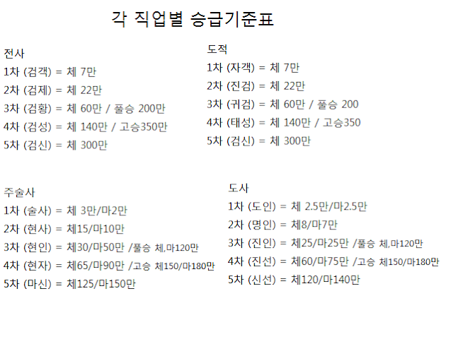 저는 현사로 승급하니 기준이 체력 15만 , 마력 10만인데