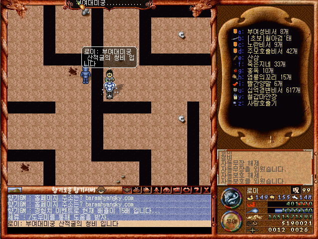 부여대미궁 산적굴의 청비 입니다.