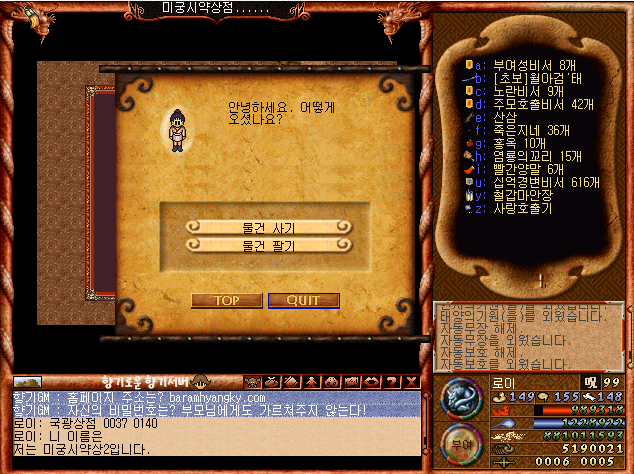 바람의나라 프리서버, 향기서버를 즐기고 있는 마신 여가 입니다.